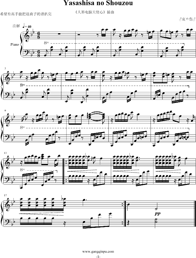 Yasashisa no Shouzou - Chobits - Free Piano Sheet Music